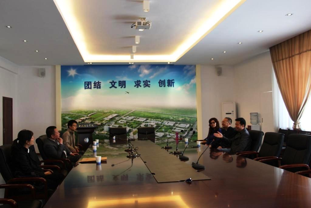 4月9日上午,西安航天工业学校副校长赵建一行三人来Beat365官网阎良校区,在Beat365官网Beat365中文官方网站院长蔡向朝、办公室主任王斐等人陪同下,参观了Beat365官网阎良校区,双方就成人教育合作办学及在西安航天工业学校设立Beat365官网教学点等事宜进行了友好、富有成效的沟通交流,达成了合作的意向。