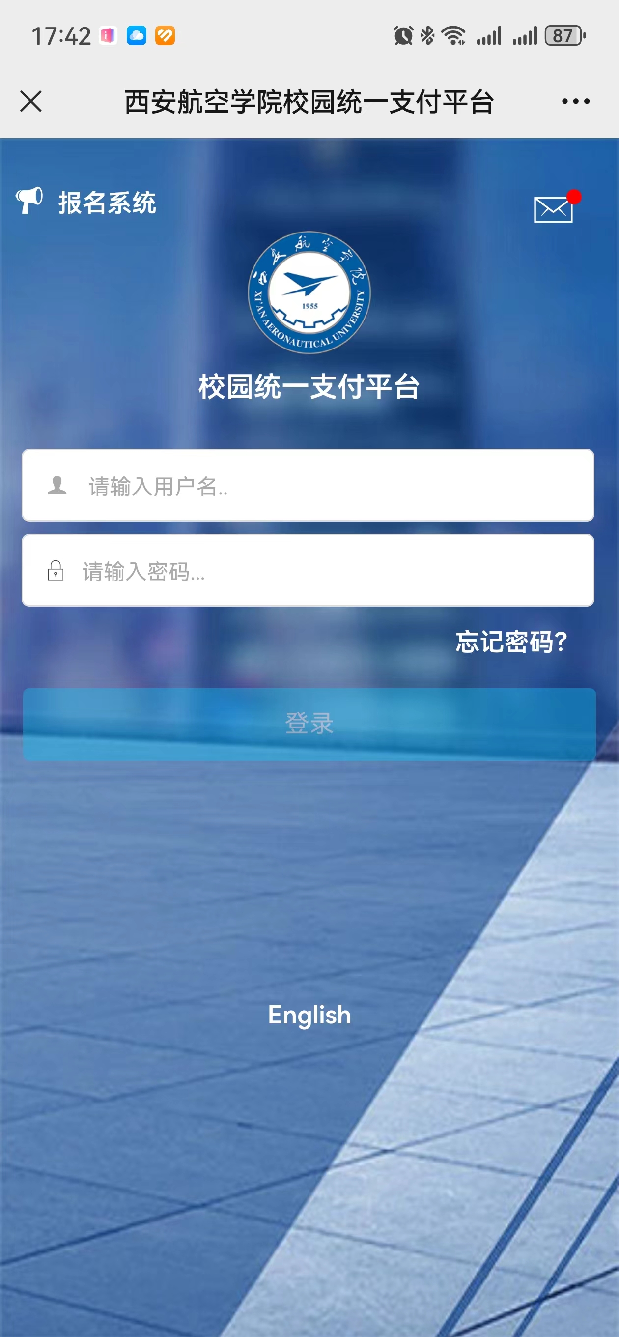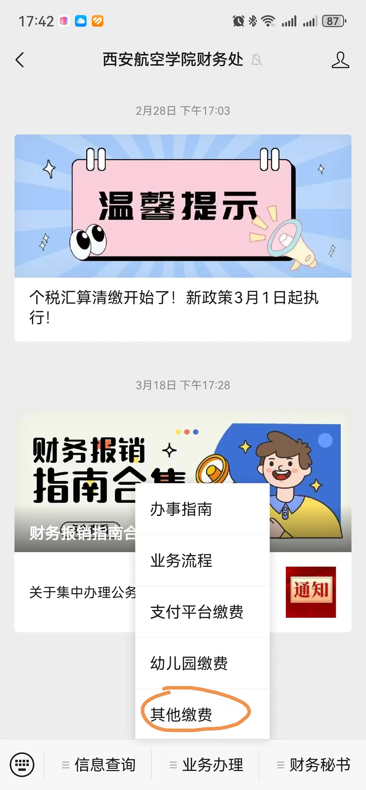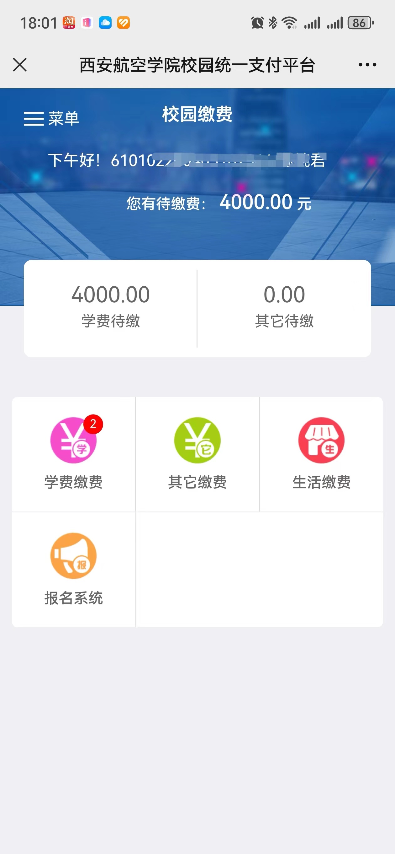 关注后点击“业务办理”、“其他缴费”,进入Beat365中文官方网站“校园统一支付平台”,输入账号、密码进行登录。