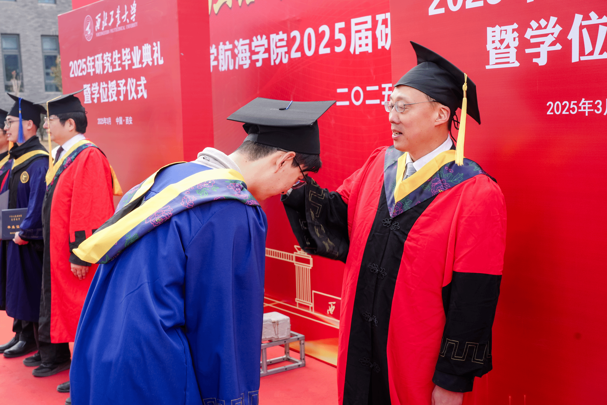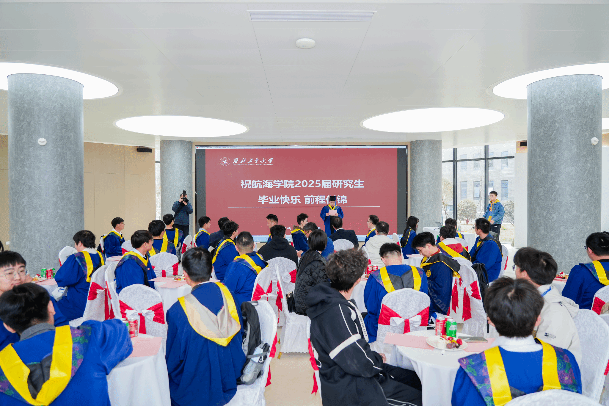 典礼第二项,潘光院长发表致辞,寄语毕业生们,“在技术变革中保持定力”“在数字洪流中守护人性温度”“在全球化浪潮中深化协同创新”,激励毕业生们,“以科技为楫,以理想为帆,此去经年,乘风破浪,在建设海洋强国的壮阔航程中,在中华民族伟大复兴的蓝色征程上,奏响属于西工大航海人的时代强音!”