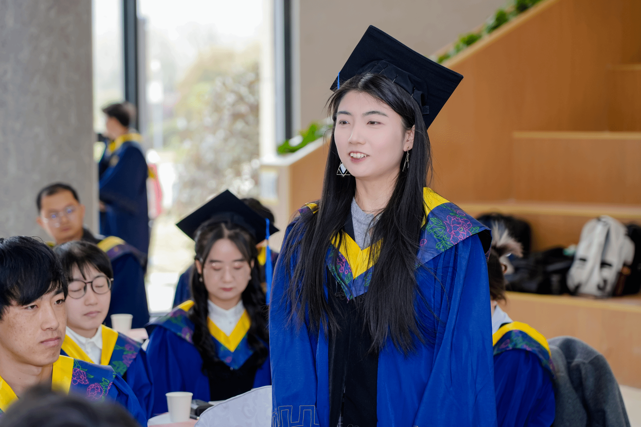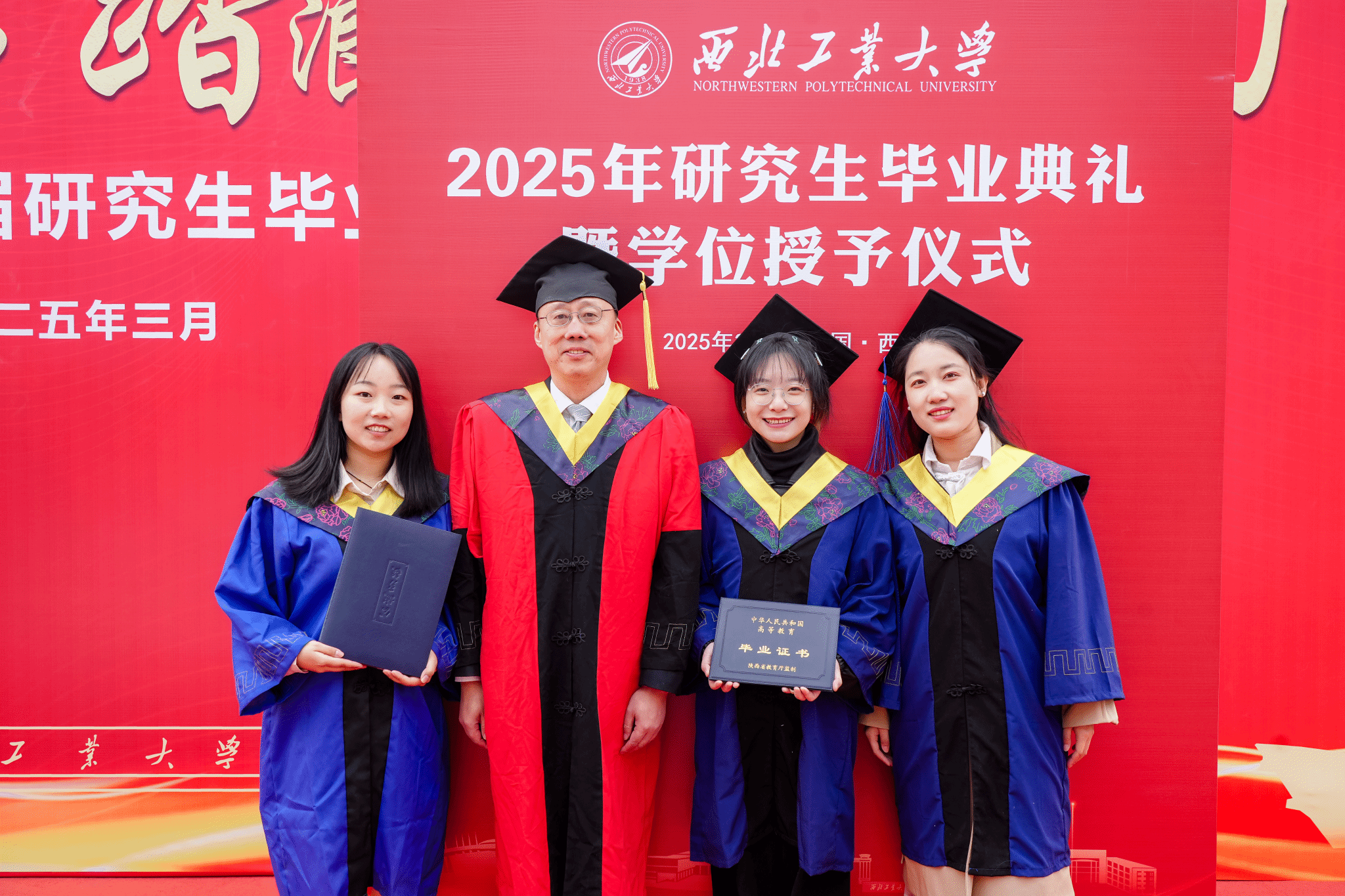 学院领导和导师代表为毕业生拨穗正冠,颁发证书并合影留念。