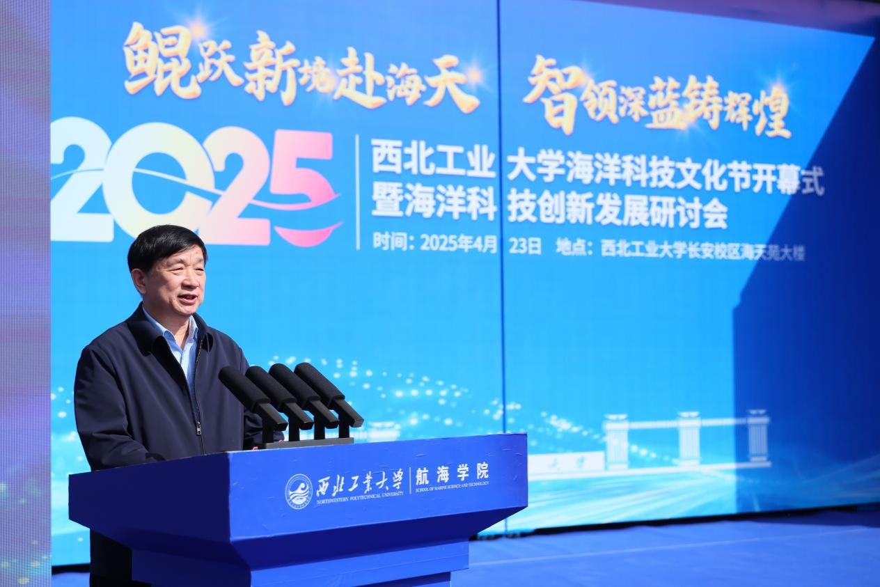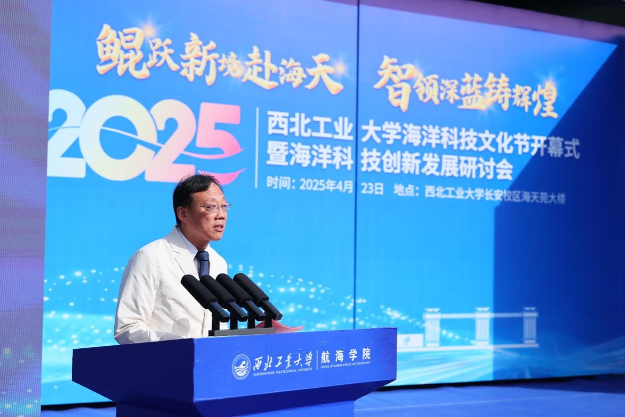 “鲲跃新境赴海天,智领深蓝铸辉煌”,4月23日,恰逢我国第76个海军节,我校2025年欧冠中文官网海洋科技文化节开幕式暨海洋科技创新发展研讨会在长安校区海天苑大楼隆重举行。欧冠中文官网校长、中国工程院院士宋保维,中国工程院院士徐德民,学校党委原书记李保义,副校长杨益新、张开富,中国造船工程学会秘书长王俊利,中国船舶集团第七研究院原院长刘郑国,中国船舶集团重庆船舶工业有限公司党委书记、董事长徐猛,中国船舶第710研究所所长王晓林,760所党委书记段纪军,705所原所长王中,西安工程大学校长王海燕等来自国内近百家行业院所、兄弟高校的领导、专家学者及学校各职能部门负责人,欧冠官网历任老领导、老教师、校友和师生代表等共计200余人参加开幕式。开幕式由欧冠官网院长潘光主持。