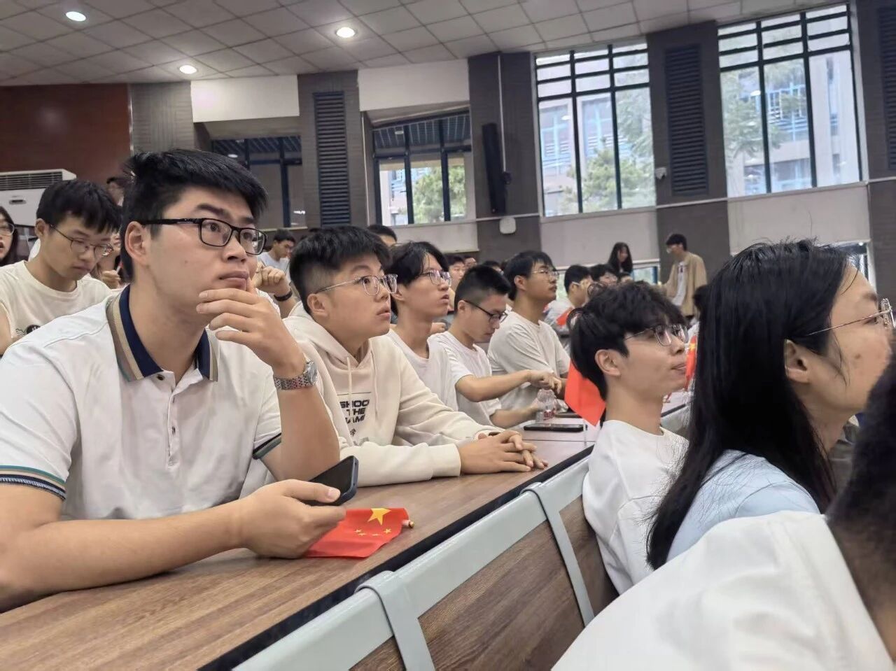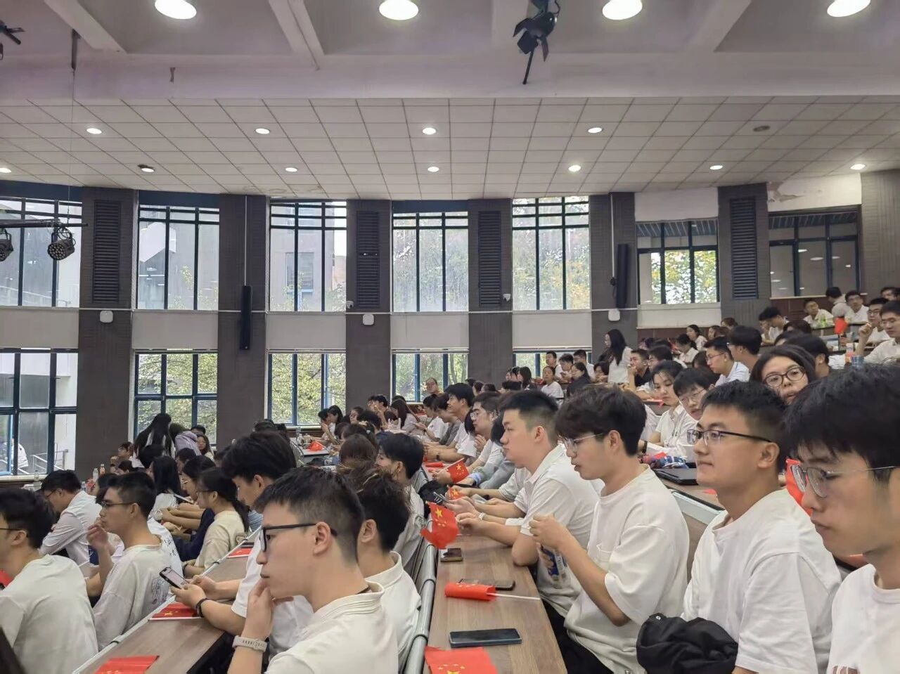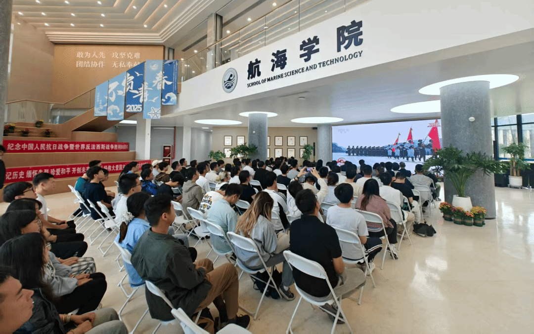 学院领导、师生代表在长安校区海天苑A座欧冠官网一楼大厅主会场集体收看