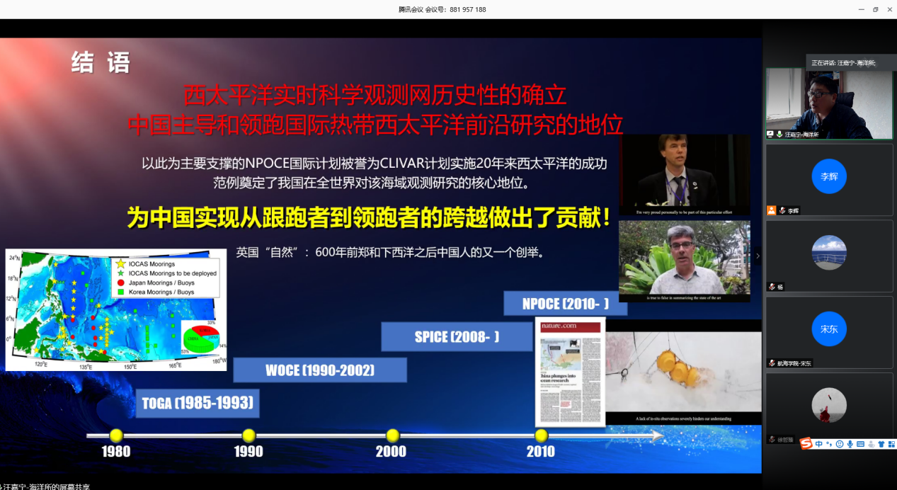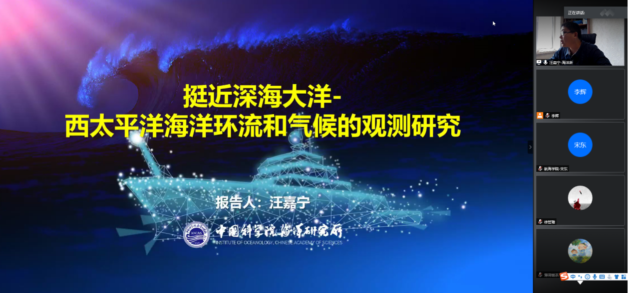 5月25日上午10:30,中科院海洋所汪嘉宁研究员应欧冠官网李辉助理研究员的邀请,为学院师生作题为《挺近深海—西太平洋海洋环流和气候的观测研究》的线上学术报告。会议由李辉助理研究员主持,学院30余名师生参会。