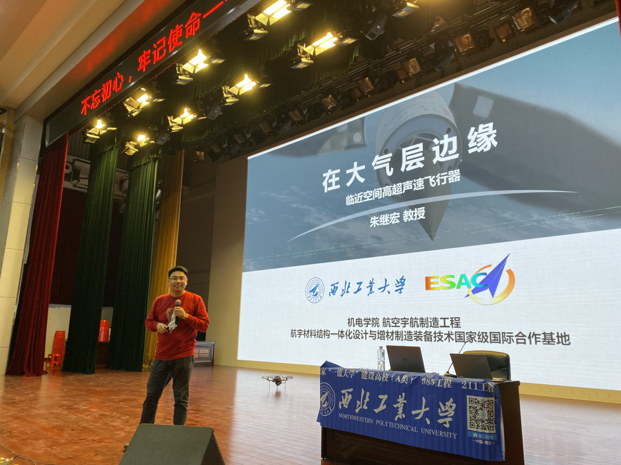 同日晚上,朱继宏教授在柳铁一中(城站校区)做了题为《在大气层的边缘》的科普报告,该校1300余名高一学生聆听了精彩的报告,朱继宏教授介绍了临近空间高超声速飞行器的发展状况及我校研究进展,极大地拓展了师生视野,并与学生进行了互动交流活动。报告现场民用无人机研究中心工作人员还进行了无人机飞行表演,激起了学生的阵阵欢呼声!