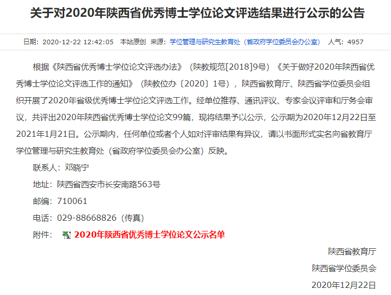 日前,陕西省教育厅公布了2020年陕西省优秀博士学位论文评选结果,欧冠中文官网共计18篇博士学位论文入选。2020年,欧冠官网共推荐4篇博士学位论文申报陕西省优博,其中,3篇入选,获评率达75%。
