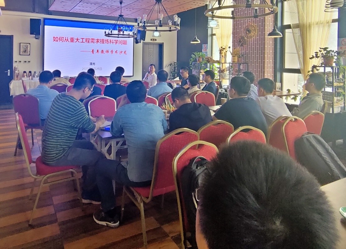 随后的经验分享环节中,潘光院长结合行业一流团队的先进经验和自身感悟,作了题为《如何从重大工程需求中提炼科学问题》的报告。他从西工大的各项建设任务与发展目标,学校扎身西部献身国防的特点,哈佛、耶鲁等世界名牌大学的变革创新经验,工程型号与基础研究之间的关系,全国创新争先奖与科学探索奖的导向,不唯论文的深层含义等几个切入点出发,引出了重大工程需求中提炼科学问题的重要性。首先,他和青年教师聊了老一辈教师黄震中、马远良、徐德民的故事,强调青年教师应该向老一辈教师学习具有使命担当,用心育人,具有执着坚定的科研事业心。接着,潘光院长又以上海大学“无人艇技术”团队为例,介绍该团队在工程应用中提炼科学问题的先进经验。他还向青年教师介绍了哈尔滨工程大学张阿漫老师团队如何瞄准国防领域中的国家重大需求,在基础研究方面发力。随后,他结合多年科研经历和自身阅历,分享了西工大“水下航行器团队”在团队管理、学术方向布局和青年教师培养等方面的经验。他鼓励大家要有干事热情,条件再艰苦也要创造条件,他表示“水下航行器团队”在研制某自航水雷时就曾经贷款搞研究。在谈到自己建设工信部重点实验室的经历时,他回顾了自己如何一步步选择并坚持梦想,通过充分调研论证,进行艰苦的基础建设,到最终工信部重点实验室拔地而起,寄语青年老师要在一个方向上艰苦的扎根深耕,坚持下来就会有收获。在谈到如何从重大工程需求中提炼科学问题时,他表示水下航行器团队坚持让青年人地在工程问题中不断历练,通过对一个个技术难题地突破,逐步加强对工程型号的认知,在这种培养模式下,当年的很多学生均已经成长为团队的技术骨干。他强调,工程实际中蕴含着大量的基础科学问题,青年老师应该瞄准国家重大需求,利用学院的科研资源、机会和力量,结合大家的技术优势共同攻克工程难题。此外,他还建议青年教师在做基础研究时需要重视实验验证手段,要在工程问题中找好切入点,针对热点问题和关键技术开展高水平的研究。最后,潘院长还和青年教师分享了海洋领域的发展方向。
