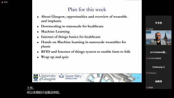 7月1日- 7月6日,应欧冠官网杨可老师邀请,格拉斯哥大学Qammer H. Abbasi教授于线上开展体域网技术的发展与未来课程。本课程的主要目的是为了让学生了解通讯技术的前沿发展,比如物联网、纳米无线网以及诸如机器学习、UWB等相关基础技术的发展现状。通过这些基础技术的学习,希望学生能够对信号处理以及大数据相关的前沿科技有所了解。同时为了满足低年级本科生的选课需求,课程难度进行了适量调整,内容侧重于对和体域网相关的各种前言学科的介绍。