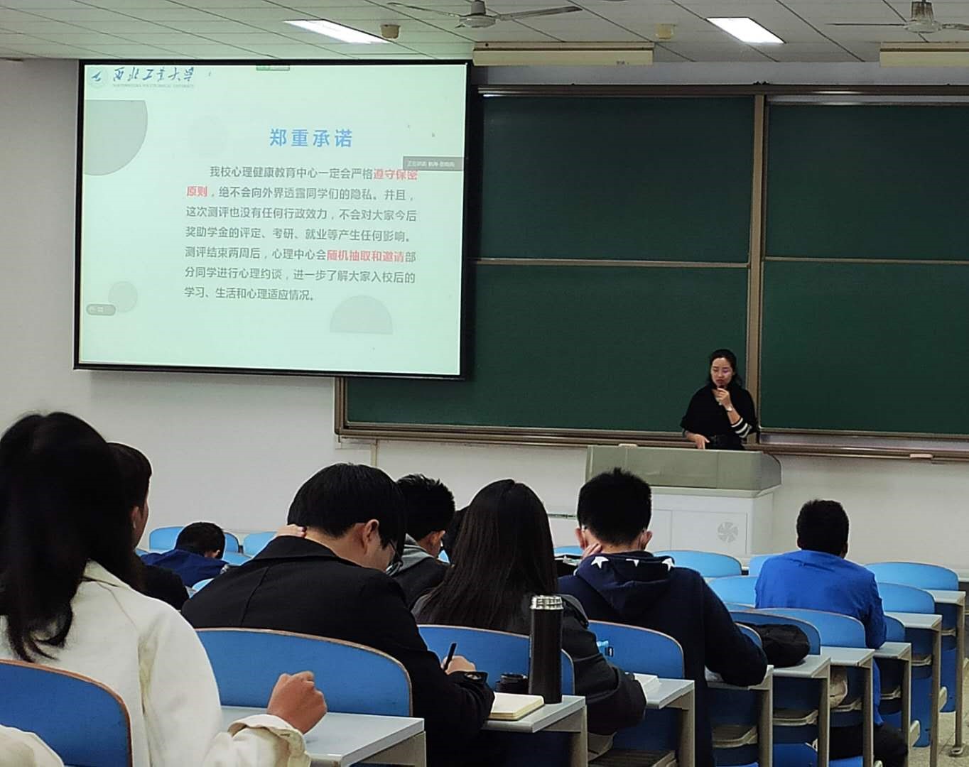 讲座内容主要包括新生可能面临的心理问题,这些问题出现的原因,以及如何自我调节等心理学的知识;其次给同学们讲解如何解读新生心理测评结果以及学校心理教育中心为同学们提供的服务和举办的活动。