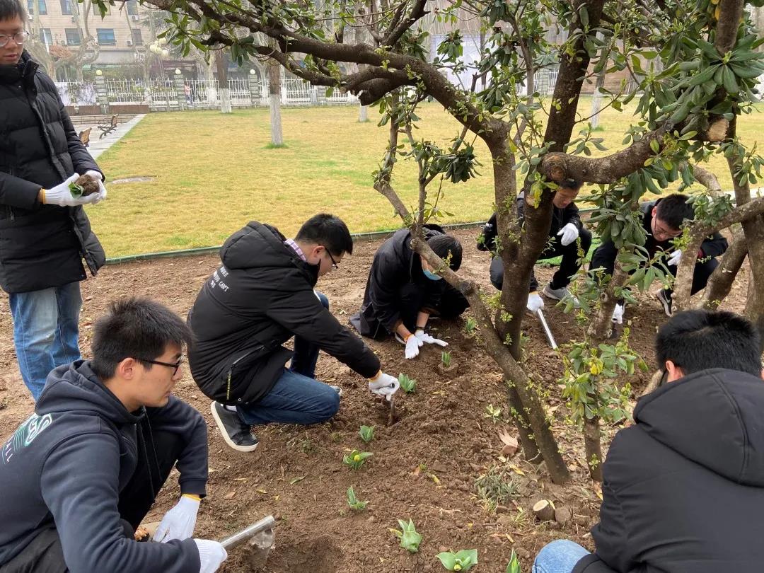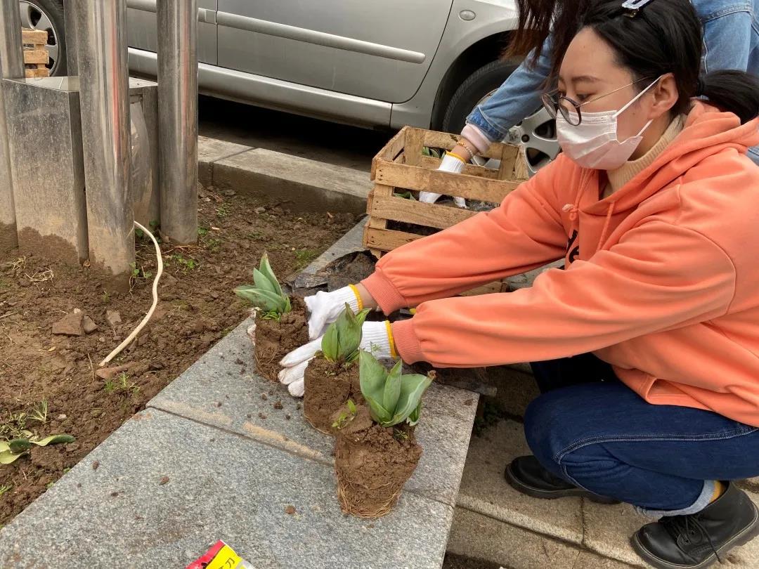 万木吐绿,万象更新。在第43个植树节即将来临之际,为践行习近平总书记关于生态文明建设系列重要论述的要求,激励海院学子积极投身生态文明实践,深入实施“美丽中国·青春行动”,欧冠官网于3月11日上午8:30,在友谊校区新图书馆门前花坛组织郁金香等花卉种植志愿服务活动。本次花卉种植活动是后勤产业集团规划的学校迎接十四运校园美化增绿添彩工程的一部分,欧冠官网响应校团委学雷锋月活动的号召,组织同学积极投身于志愿服务工作中,为学校贡献自己的一份力量。