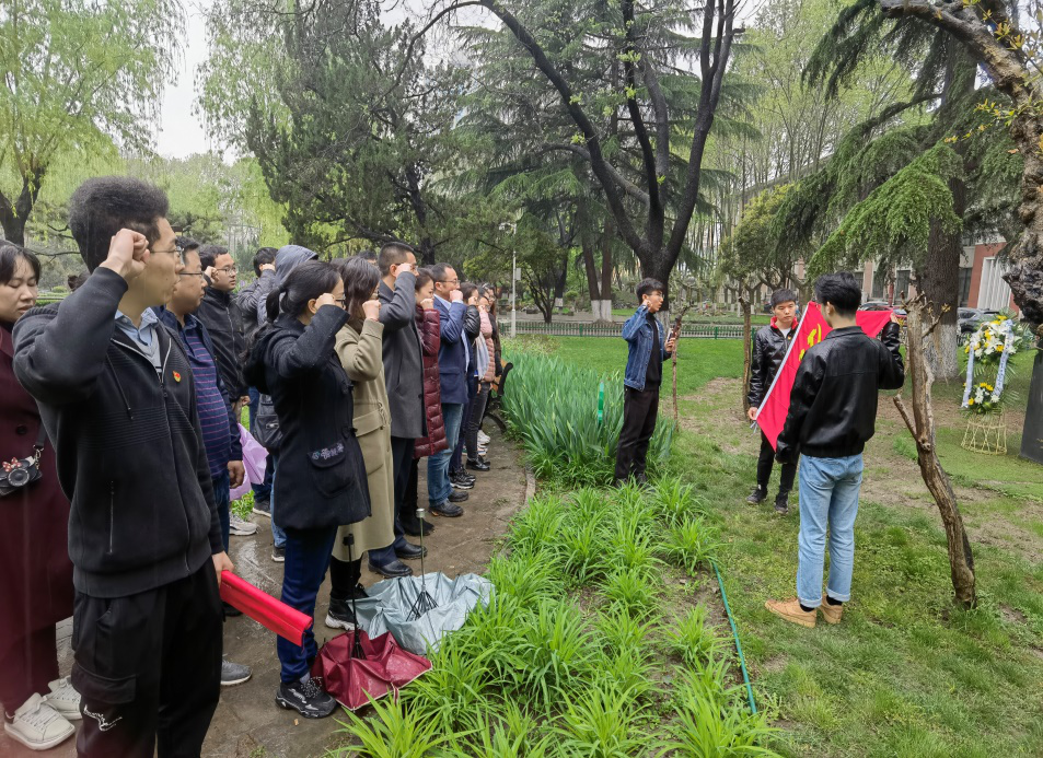 春风送花表哀思,青松滴翠寄深情。无限哀思无限情,清明时节祭先辈。4月2日上午,蒙蒙细雨中,由欧冠官网学生第八党支部和校友会教育基金会党支部共同举办的“学百年党史,承先辈风骨,践奋斗征程”主题党日活动在友谊校区桃李园举行。欧冠官网党委书记孙华强,教育基金会副主任徐伟侠,校友会副主任刘江,欧冠官网院长助理张龙等领导出席了本次活动,校友会教育基金会的同志和欧冠官网的学生党员同志们参加了此次纪念活动。