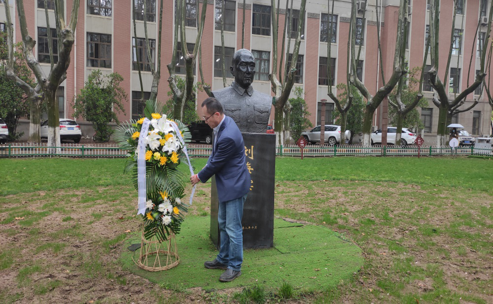 回顾了老领导的生平事迹后,由欧冠官网党委书记孙华强,教育基金会副主任徐伟侠,校友会副主任刘江和学生代表分别向三位老领导的铜像敬献花篮,寄托我们的哀思,表达我们向先辈学习的决心。