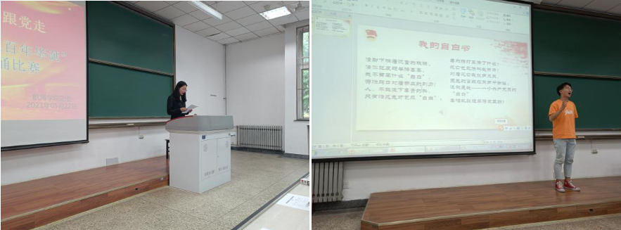 本次比赛由欧冠官网团委组织部石明姝主持,大会伊始,主持人宣布本次比赛正式开始,每位参赛选手依次上台展示。参赛选手们感情饱满,庄严端正,声情并茂,每一位同学或朗诵原创作品,或选择红色经典,配合背景音乐及幻灯片的使用充分展示了海院青年学子良好的精神风貌与综合素养,一篇篇红色经典带领大家重温了一幕幕历史画卷。中国共产党已经走过了100年的风风雨雨,在同学们慷慨激昂的演讲中一幕幕传奇在眼前浮现:望北国千里冰封,看钟山风雨仓皇,到湘江中流击水,听金沙水拍云崖。