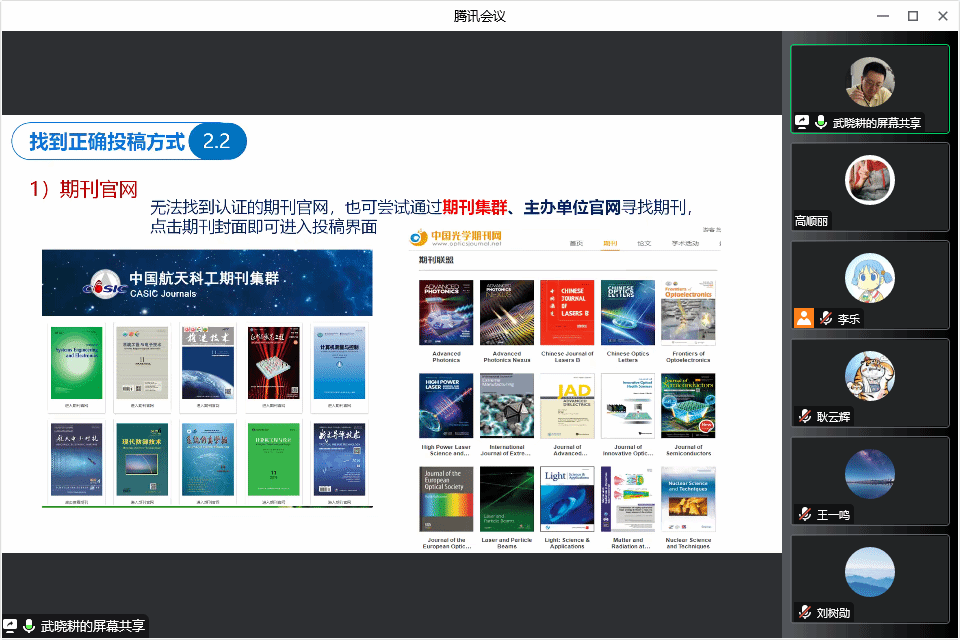 为了营造良好学术交流氛围,提高学院研究生学术论文撰写水平,11月29日下午17点,欧冠官网学业辅导站邀请欧冠中文官网期刊编辑部主任武晓耕老师开展经验分享会,通过线上会议交流的方式,跟同学们深入探讨科技论文写作技巧与投稿心得,受到在场师生的热烈欢迎。欧冠官网院长助理耿云辉老师,硕士研究生辅导员李乐老师、博士研究生辅导员张晓燕老师及学院各年级学生参加了本次交流分享会。