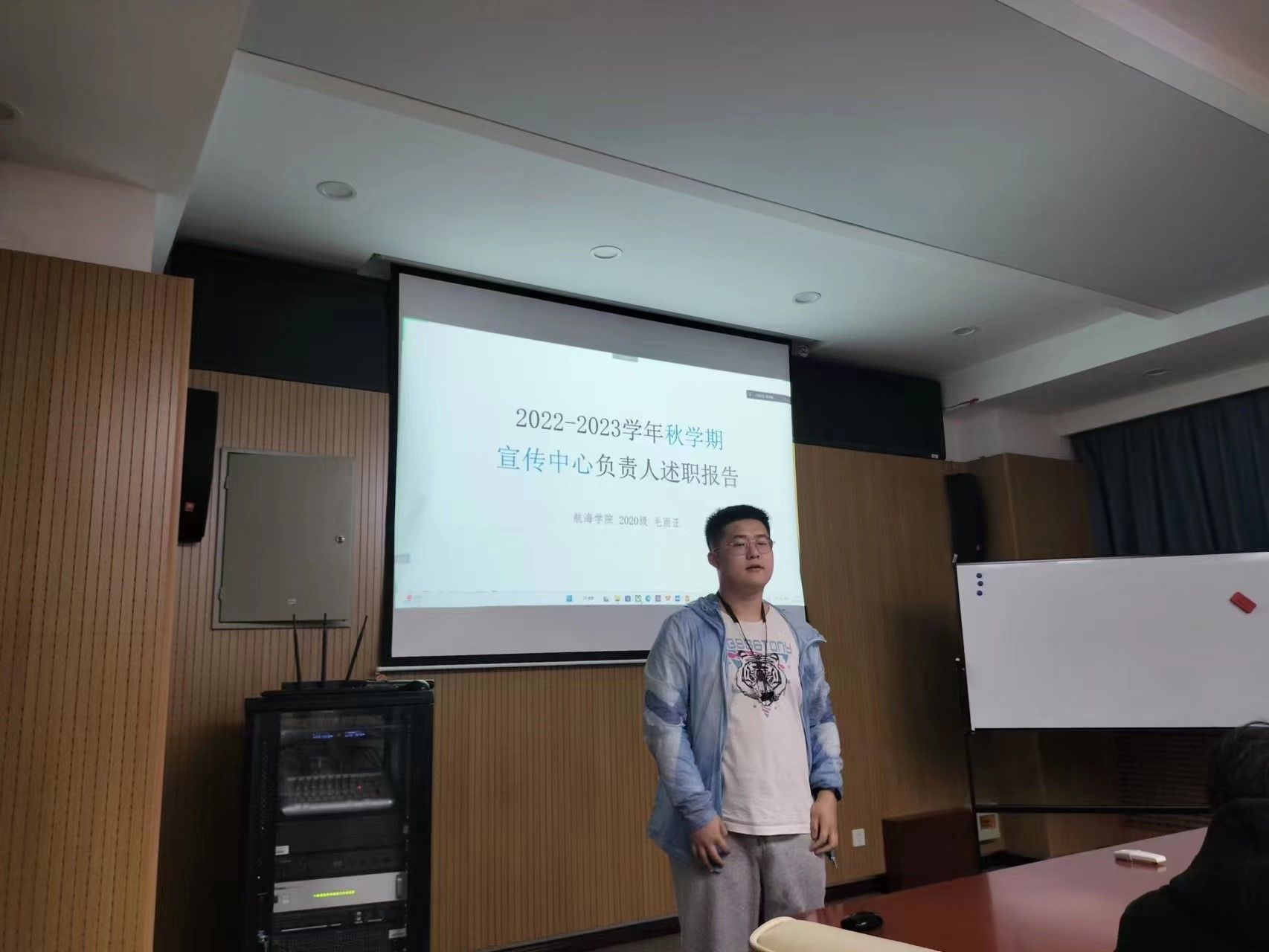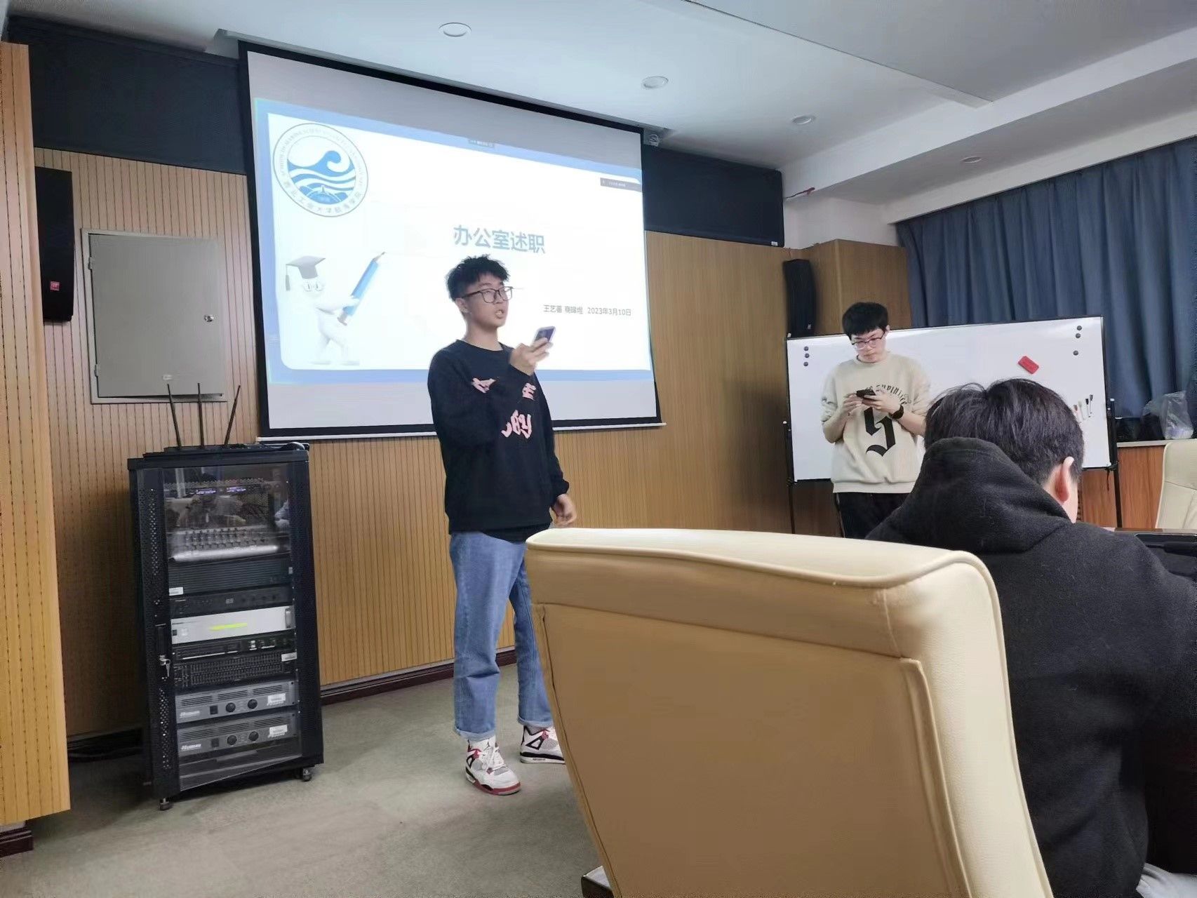 首先,文体中心负责人孙雅婷进行述职。文体中心负责组织了举办学院各类文艺和体育活动,如迎新晚会和“蝠鲼杯”小班篮球赛。在未来的工作中,文体中心将继续发挥优势,改善不足,做好部门工作。