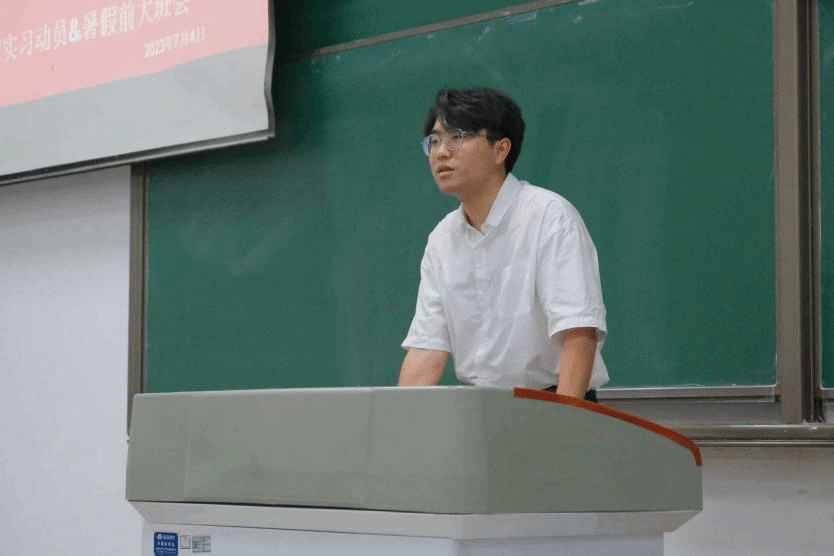 为确保此次实习顺利进行并鼓励大家积极参与,21级欧冠官网于2023年7月5日召开了青岛认识实习动员大会。本次动员大会线上、线下同步进行,欧冠官网副书记王银涛出席本次会议,参与本次实习的全体同学参会。本次会议由辅导员杜朝辉主持。
