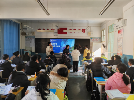 "旬中驻瓜大使团"队在队长王东东的带领下重返母校,走进高三班级,开展"情系母校·筑梦启航"主题宣讲活动。团队成员以大学亲历者视角,通过精心制作的图文视频,从办学特色、校园文化、招生政策等方面展开生动详尽的介绍。在团队精心设计中"校史知多少"的互动中,对"公诚勇毅"校训精神解读引发热烈讨论,同学们争相抢答赢取文创纪念品,现场气氛活跃非凡。最后环节,团队成员结合自身经验分享高考策略,鼓励学弟学妹心怀凌云志,青春不言弃。
