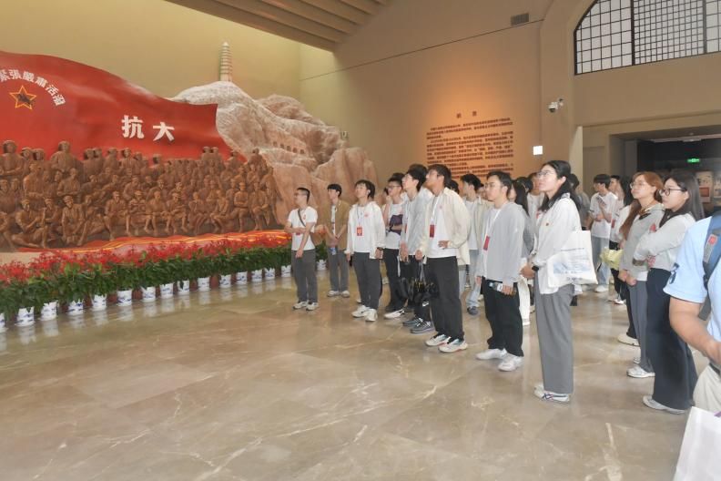 19日中午,实践队首站抵达延安革命纪念馆。在3.5万件文物与5500余幅历史照片前,师生们驻足凝视泛黄的《解放日报》、朴素的纺车与草鞋,通过讲解员的生动讲述,全景式回顾了党中央在延安领导中国革命走向胜利的伟大历程。“这些实物比教科书更震撼!”随行学生感慨,“每一件展品都在诉说着信仰的力量。”