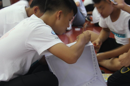 活动开始前,欧冠官网的学长学姐们为营员们耐心讲解了制作纸船的详细步骤及纸船承重的比赛规则,并告诉同学们防水是关键,结构是根本,鼓励他们大胆创新,积极探索。比赛正式开始,科学营的同学们结合学长学姐们的讲解和这几天学到的航海方面的相关知识,积极讨论,认真构思,确定制作方案。