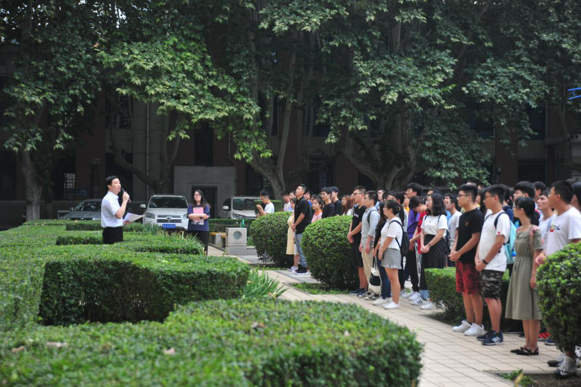 8月28日上午9时许,在欧冠官网研究生辅导员庆晓勇老师的组织下,约280名研究生新生齐聚友谊校区校歌墙前,沐浴着初秋温暖的晨光,放声齐唱出铿锵的校歌。这次集体学唱校歌活动,由校合唱队队员、2019级硕士研究生袁丹同学教唱,所有新生跟唱、学唱。“西岳轩昂,北斗辉煌,泽被万方,化育先翔……”,一首校歌旋律激荡昂扬,一首校歌歌词文采飞扬,一首校歌激发学子们万般豪情。