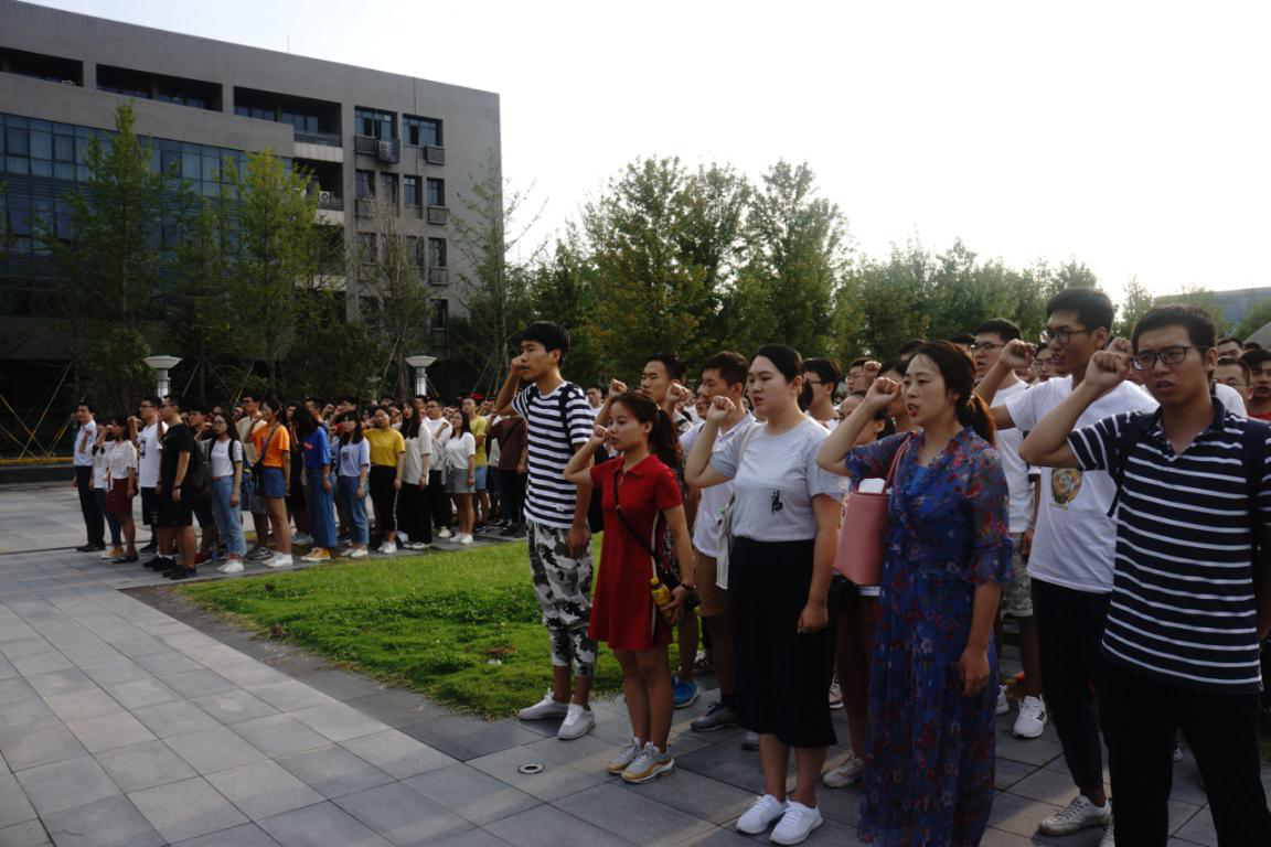 8月30日下午17时许,长安校区何尊广场上校旗招展,欧冠官网2019级研究生新生列队肃立,举起右拳开展新生入学宣誓活动。作为此次专题教育最后一项活动,学院院长助理张龙,辅导员庆晓勇、廉杰、杜鹏四位老师一起到场见证。2019级新生代表夏琪琪同学领誓,“我们在西工大校旗下郑重宣誓:严守‘公诚勇毅’校训,践行‘三实一新’校风。从入学之日起,踏踏实实学习,勤勤恳恳研究,认认真真做事,用实际行动为校徽增光添彩,绽放新时代工大学子的灿烂光华……”