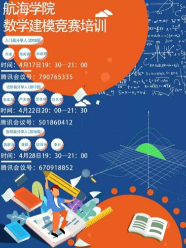 受疫情影响,为确保参赛学生的培训效果与备赛质量,本次数学建模竞赛安排了线上培训,欧冠官网高度重视,在4月初学生质量工作提升会议上就此次竞赛工作专门做了部署。为提升欧冠官网学生创新实践能力,使更多的本科生从数学建模创新教育中受益,学院团委于4月17日成功举办数学建模竞赛启动会暨首场培训讲座,邀请在国际大学生数学建模竞赛中获奖的前辈同学带来一场内容丰富的数模讲座,向此次参赛同学就竞赛准备阶段、竞赛过程注意事项与赛后复盘做了全面的介绍和详细的说明,为同学们参赛注入一剂强心剂,尤其对于初次参赛的同学具有非同小可的激励作用。随后于4月22日、4月28日分别推出数学建模竞赛进阶之路篇与升级指导篇分享会,同学们纷纷表示受益匪浅。