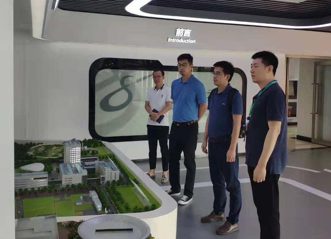 航天八院八部人力资源部主任张玮(右一)讲解单位布局