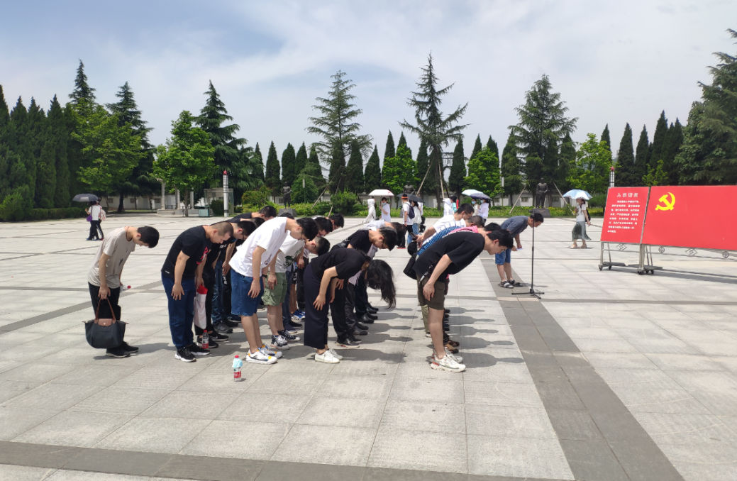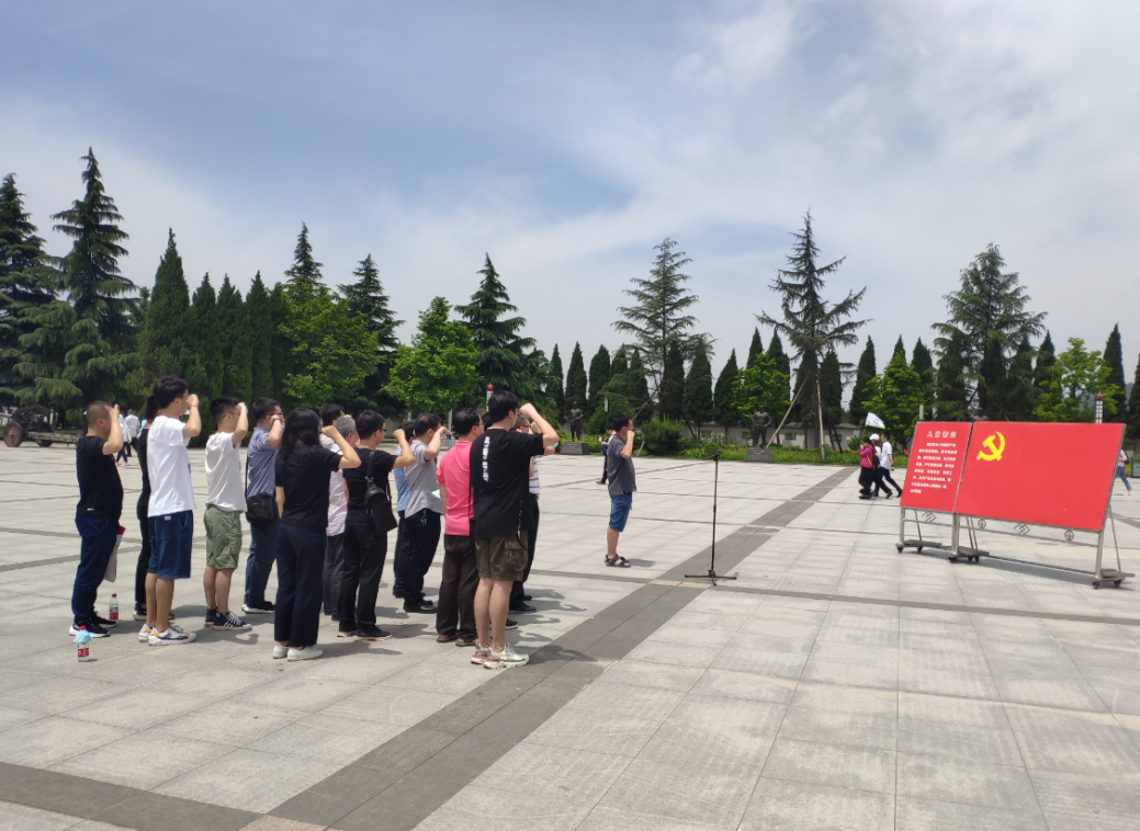 6月6日上午,统一乘车到达扶眉战役纪念馆。全体党员于纪念碑前庄严肃立,在欧冠官网304党支部支委黄闯带领下,24名党员同志重温了入党誓词,并敬献了花篮,三鞠躬表达了对先烈的无限敬仰之情,缅怀了他们的丰功伟绩。