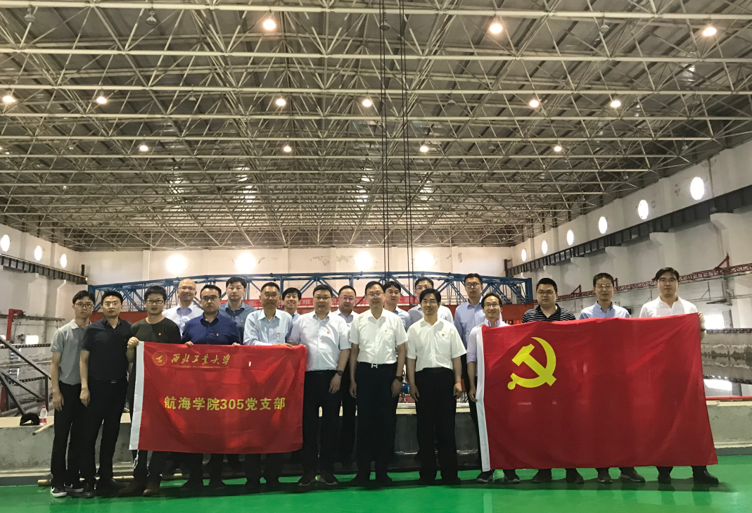 最后,潘光带领王铿一行参观了无人水下运载技术工业和信息化部重点实验室,两个支部党员在水池前合影留念。