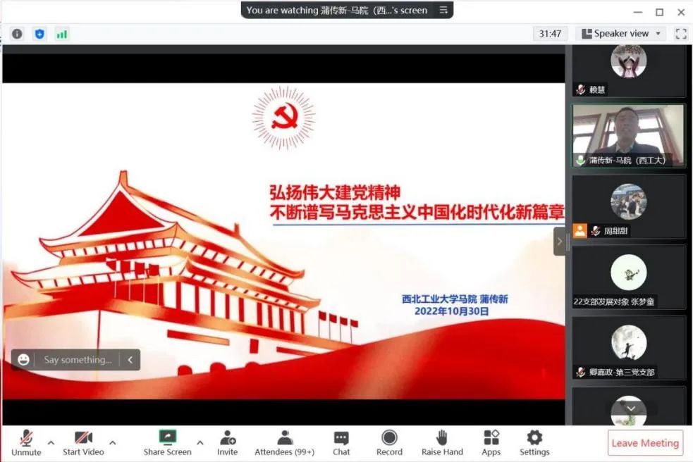 2021级研究生 刘超:此次党课上,我们一起回顾百年党史,回顾风雨飘摇的近代中国,是什么让我们从备受欺侮走向今天的繁荣富强?毫无疑问,没有共产党就没有新中国。身为西工大欧冠官网的一份子,同时也是一名入党积极分子,我要努力学习,将个人理想奋斗融入祖国建设中,为祖国复兴贡献自己的一份力量。