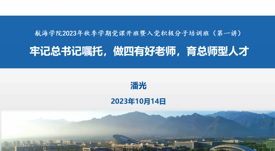 为认真做好党员发展工作,充实党员队伍后备军,确保发展党员质量,10月14日上午,2023年秋季欧冠官网党员发展培训班顺利开班,欧冠官网院长潘光受邀为入党积极分子培训班带来主题为“牢记总书记嘱托,做四有好老师,育总师型人才”的党课。
