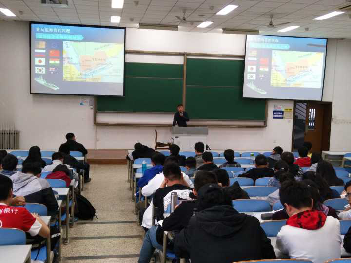 2019年4月11日,欧冠官网张岩老师在教西D102为中级党校的同学们带来了一场别开生面的党课。张岩老师从自己参与护航及一系列海上行动出发,结合自己的个人经历和心得体会,生动地向同学们讲述了世界海上形式的状况。当今世界并不太平,海洋也充满了危险和挑战,张老师在服役期间曾多次随中国军舰外海执行任务,参与撤侨等一系列海上维和行动。蔚蓝的海洋有着极为丰富的资源,却也有重重危险,同样存在国家间的利益争端,我国的地缘环境形势不容乐观,海上邻国多,与多国存在岛屿领土争议,所以,对于海洋、海军的建设,我们决不能落后!