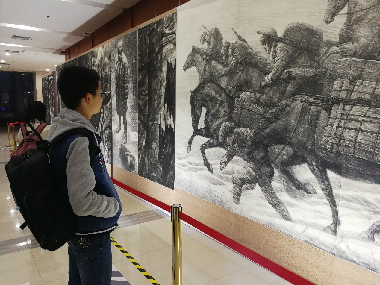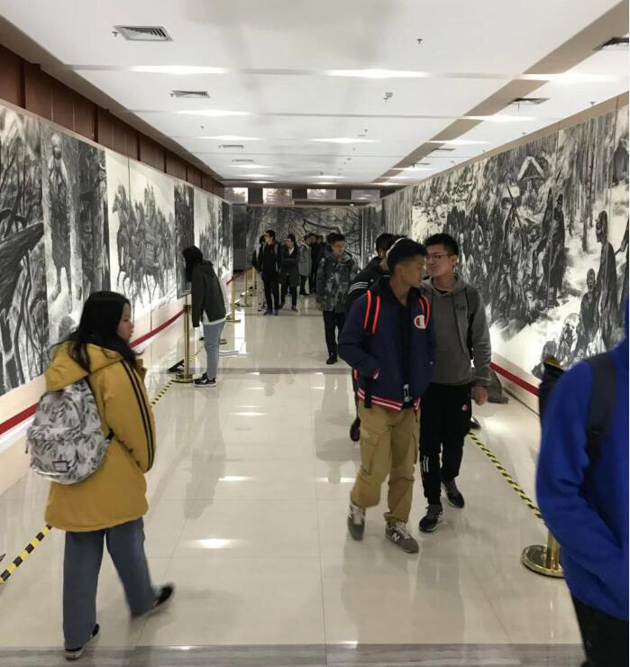 纵使风餐露宿,眠冰卧雪,纵使缺衣少食,给养匮乏,抗联英烈依旧艰苦奋斗着,拼尽全力与敌人周旋。他们英勇无畏,百折不挠,用血肉之躯书写了一段可歌可泣的抗战历史。为了解抗联历史,学习先烈不惧艰险、甘于奉献的优秀品质,11月13日下午18:00,在欧冠官网院长助理张龙老师、马克思主义学院陈诚平老师和海洋工程类2019级辅导员王士刚老师的带领下,欧冠官网初级党校培训班全体同学前往启真楼一楼参观“抗联之魂”主题全景素描展览。
