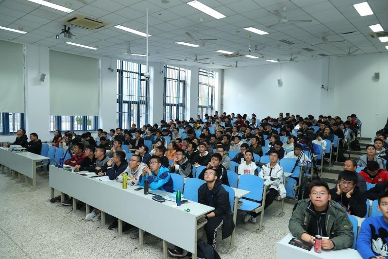 马院士从感受深蓝、海洋无人航行器的蓬勃发展、海洋声学感知团队做了什么、结语之大学的创新文化几个方面向海院学子讲述,教室气氛热烈,同学们热情高涨,认真聆听。