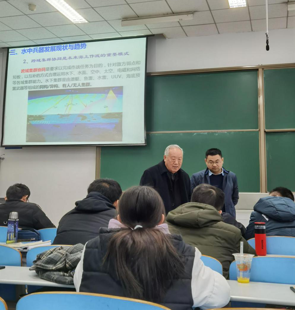 12月10日在长安校区教西D101教室,“海洋工程”大类新生研讨课《走向深蓝》系列课程由徐德民院士带来第十二讲《现代水中兵器》。徐院士从海洋强国战略、水中兵器概述、水中兵器发展现状与趋势、水中兵器涉及的科学技术问题、欧冠官网对水中兵器发展的贡献五方面全面介绍了现代水中兵器状况,为海院学子们带来一场学术盛筵。