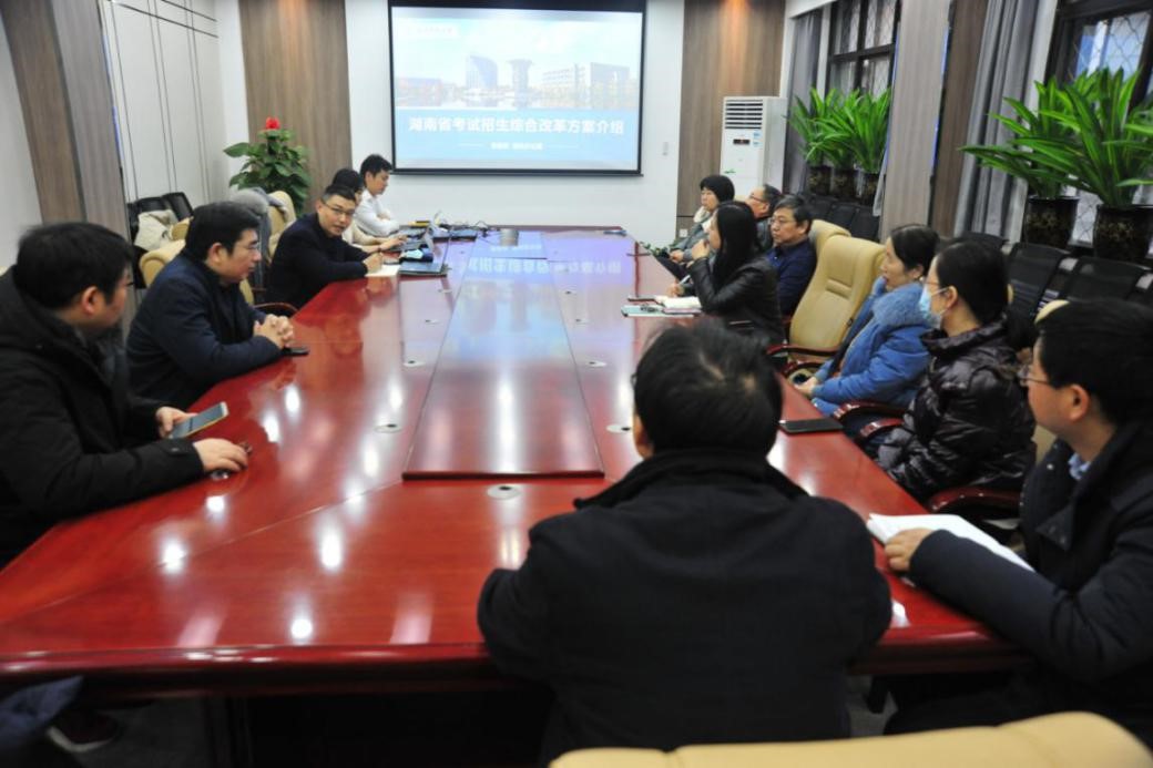 1月16日,学校招生办公室首站来到欧冠官网就湖南省新高考改革招考模式,在学院201会议室举行了《湖南省考试招生综合改革方案》培训会。教务处副处长兼招生办公室主任王克勤、学校招生办公室副主任韩寅奔、副主任李佩,欧冠官网党委书记孙华强、副院长曾向阳、湖南招生组组长戚茜及湖南全部14个地区的招生负责人参加了本次会议。