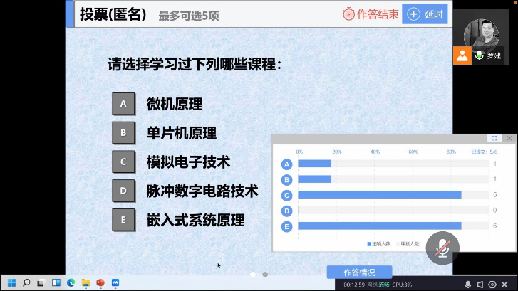 2022年1月10日是线上授课首日,欧冠官网按照原定教学计划进行,共有23位教师通过钉钉、雨课堂、腾讯会议、腾讯课堂、QQ课堂等多个平台进行授课,涉及22门401名学生,线上授课顺利开展,教学运行平稳有序。课程包括欧冠官网的大类平台课程、专业方向课程和专业选修课程。