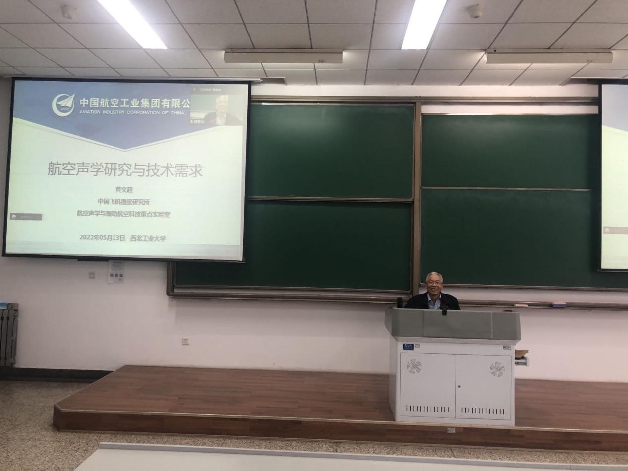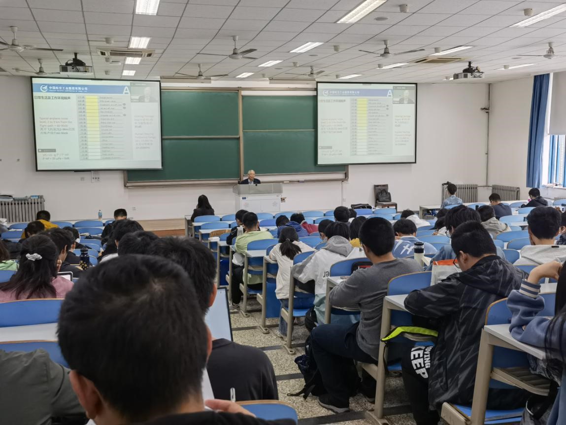 最后,指明了航空声学发展的机遇与挑战,尤其是我国飞机型号研制面临挑战,包括适航噪声标准不断提高,主流飞机舱内噪声水平不断降低,如不尽快提高我国航空声学设计水平,将面临严重的技术壁垒。黄主任号召同学们抓住机遇,迎接挑战,好好学习,积极投身祖国的国防事业。
