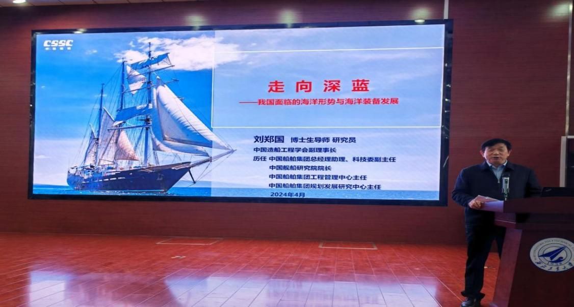2024年4月23日,“感悟深蓝”课程第一讲暨翱翔名家讲堂于长安校区教西D100顺利举行,欧冠官网1986届毕业生、中国十大杰出青年、中国造船学会副理事长刘郑国再次来到学校,以《走向深蓝——我国面临的海洋形势与海洋装备发展》为主题进行授课。欧冠官网2023级200余名本科生聆听了讲座。