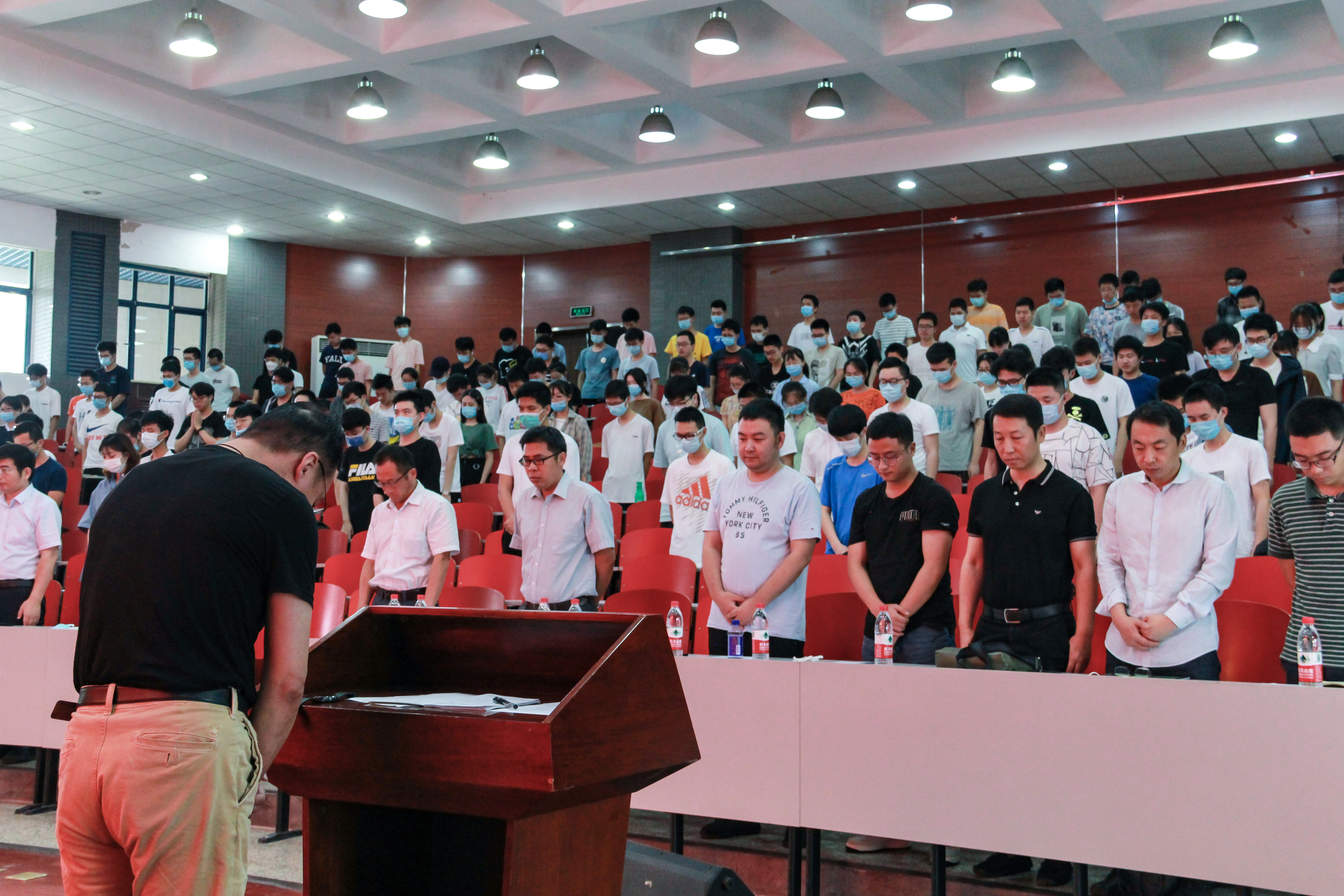 会议第一项,由潘光院长带领同学们为在新冠肺炎疫情中牺牲的烈士和逝世同胞默哀。“逝者已逝,生者如斯”,疫情对我们造成了困扰,却阻挡不了我们生活的脚步。隔离期间,线上空中课堂与“答疫解惑”专题栏目的成功举办,让我们感受到欧冠官网师生齐心协力、共克时艰的不懈努力。