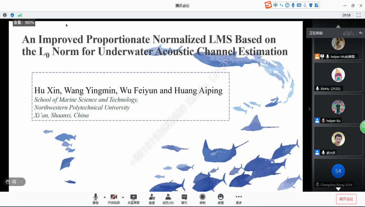 2020年,欧冠官网克服国际疫情的严重影响,积极推动线上国际交流工作开展。在研究生赴国(境)外交流学习专项资金资助下,共组织36名学生参加了IEEE海洋学会议、IEEE进化计算会议、国际噪声控制工程大会、IEEE国际信号处理、通信和计算会议等高水平国际学术会议并做口头学术报告,充分展示海院学子扎实的科研能力、开阔的国际视野与关注学术前沿问题和国际最新研究成果的科研意识。