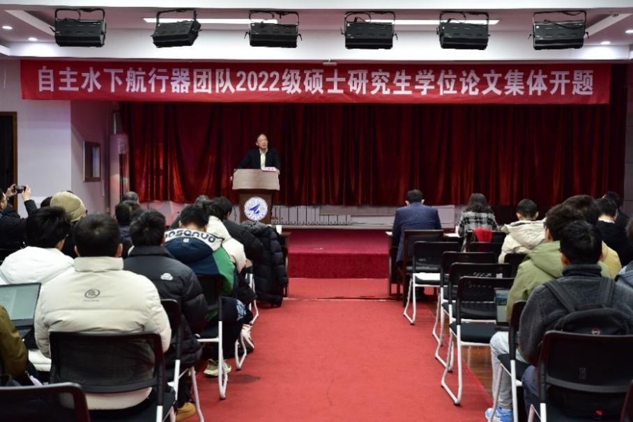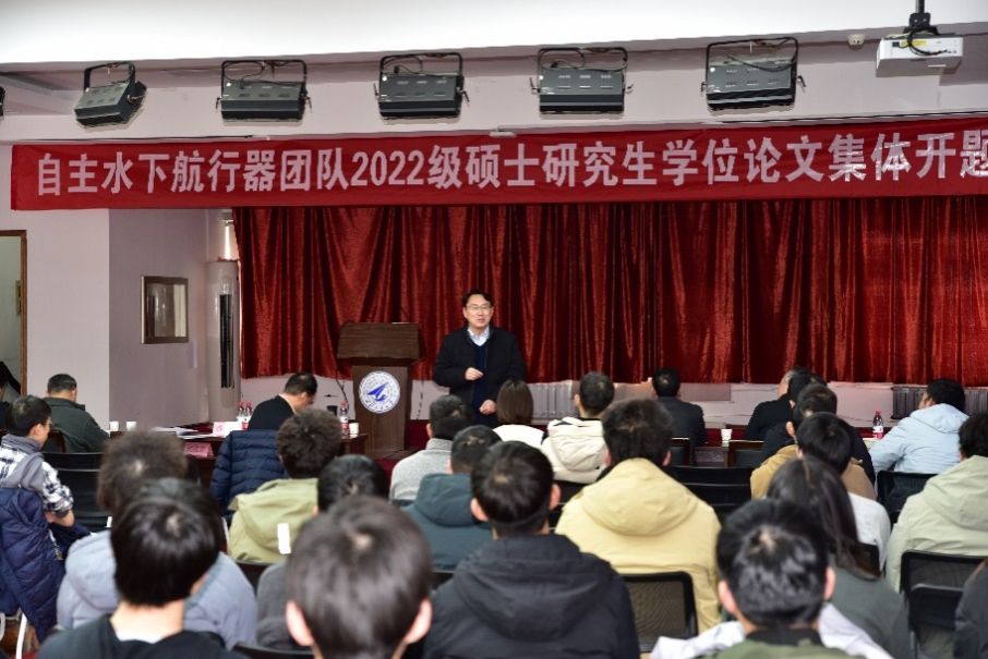 开题伊始,潘光院长、曾向阳副院长、杨珍老师依次上台致辞。潘光强调,根据学校的总师育人文化要求,学院和团队在研究生培养上应上下对齐、共同发力。研究生培养面临研究方向的选择问题,而研究方向对未来的工作规划和发展前景具有重要指导作用,研究方向应紧贴国际学术前沿,聚焦国家重大战略需求和学校重要科研方向。另外,开题报告的内容选择在很大程度上决定了学生的学术和职业方向,是提高学生科研能力的重要环节。他希望,学生和导师们结合团队承担的大型UUV、仿生柔体潜水器、新型水下航行器等科研任务,在有组织科研基础上,凝练出高质量的论文题目,更好地服务国家战略需求。这次集中开题作为一种新的尝试,打破传统单一方向分组答辩的模式,有助于拓展导师和学生的学术视野,希望这次尝试对学生成长、学院乃至学校的研究生培养工作提供有益的经验和做法。