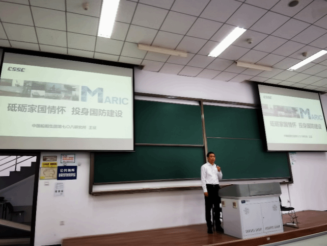 2021年5月,王征校友走进教室,为欧冠官网师生带来题为《砥砺家国情怀,投身国防建设》的“感悟深蓝”精彩授课