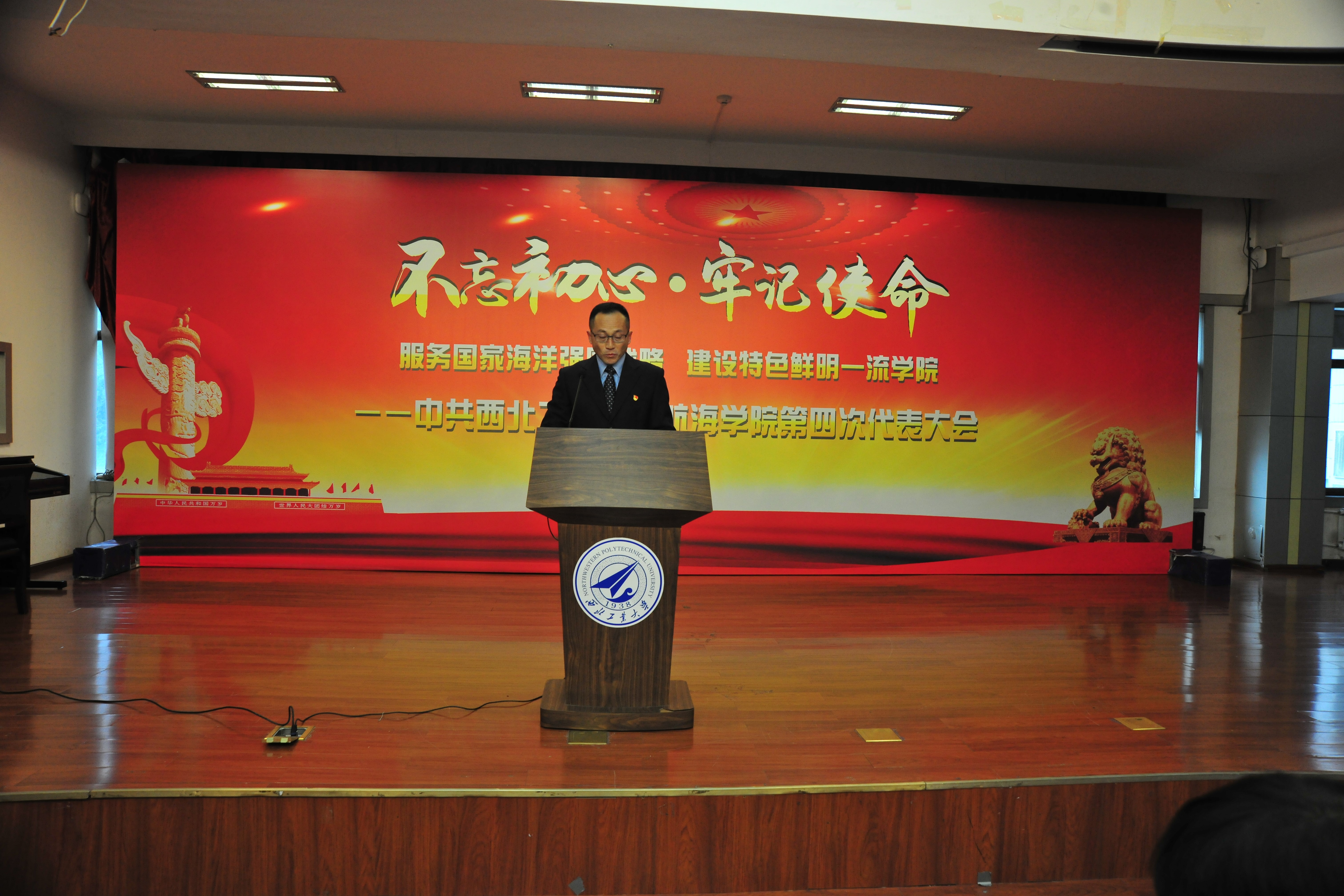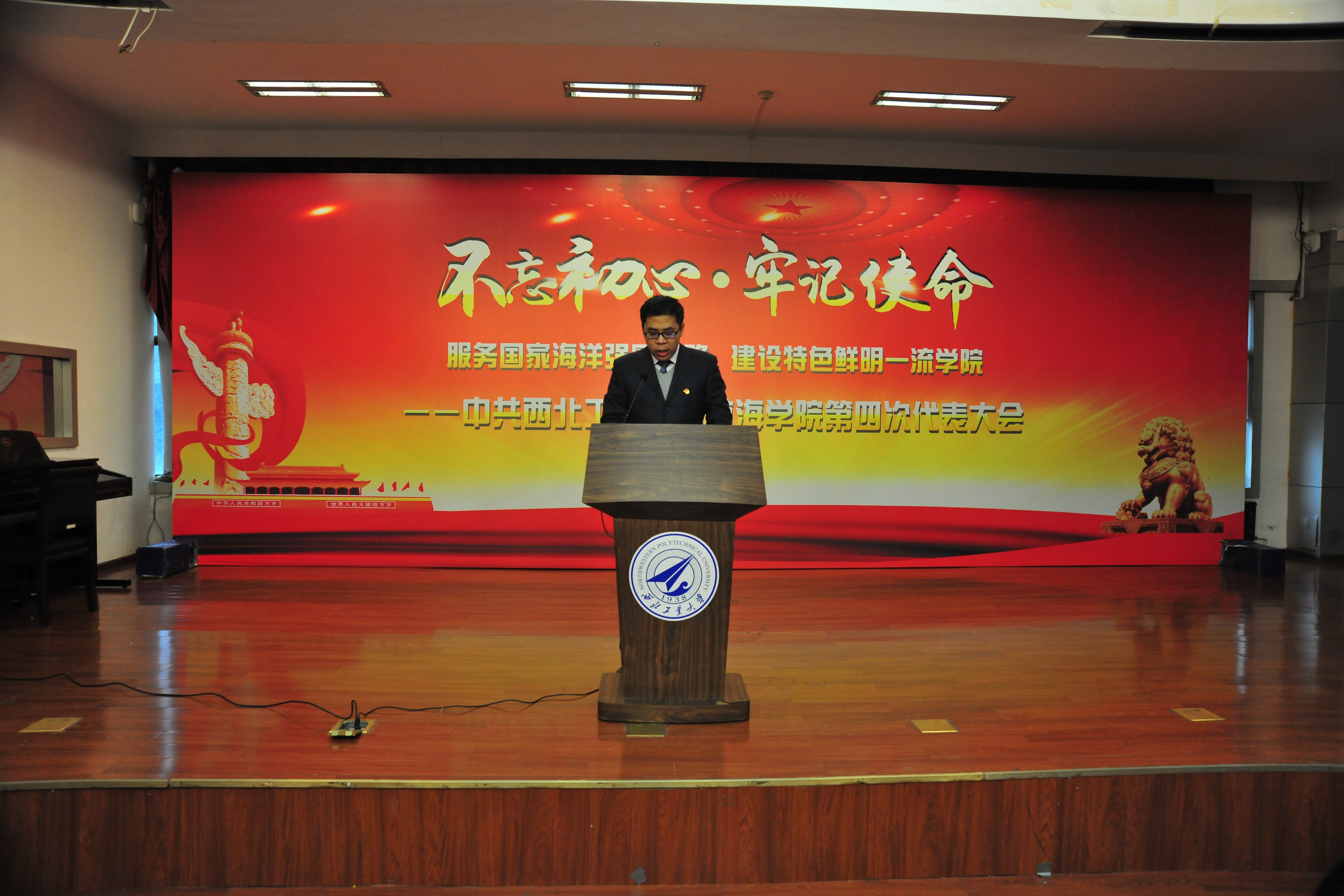 大会在雄浑嘹亮的国歌声中拉开序幕。首先,学院党委副书记(主持工作)孙华强代表中国共产党欧冠官网第三届委员会,作了题为《不忘初心、牢记使命,服务国家海洋强国战略,建设特色鲜明一流学院》的报告,对学院四年来的工作进行了总结和回顾,分析了学院面临的机遇和挑战,展望了未来五年学院下一届党委的工作设想和任务。报告指出,新时代赋予新使命,新发展带来新机遇,新要求提出新任务。我们必须登高望远,忠诚担当,戮力同心,勇往直前,把机遇转化为加快学院事业发展的新优势,把挑战转化为学院向奋斗目标迈进的新动力,主动对标看齐,争创一流,不断提升学院办学水平和核心竞争力,践行为党育人、为国育才的初心使命,落实立德树人根本任务,抢抓机遇,乘势而上,主动作为,在建设海洋强国的历史使命中贡献学院力量!